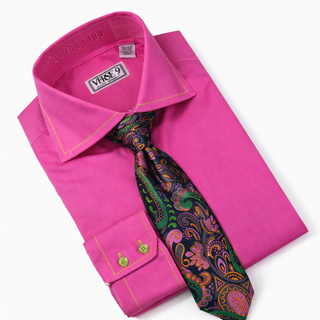 Pink w/ Green Top Stitch & Jack 2 | Shirt & Tie Set