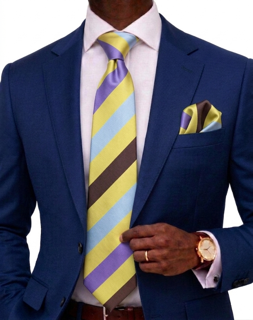 Egyptian Stripe A2 | Gold/Lavender/Brown/Grey | Tie & Pocket Square