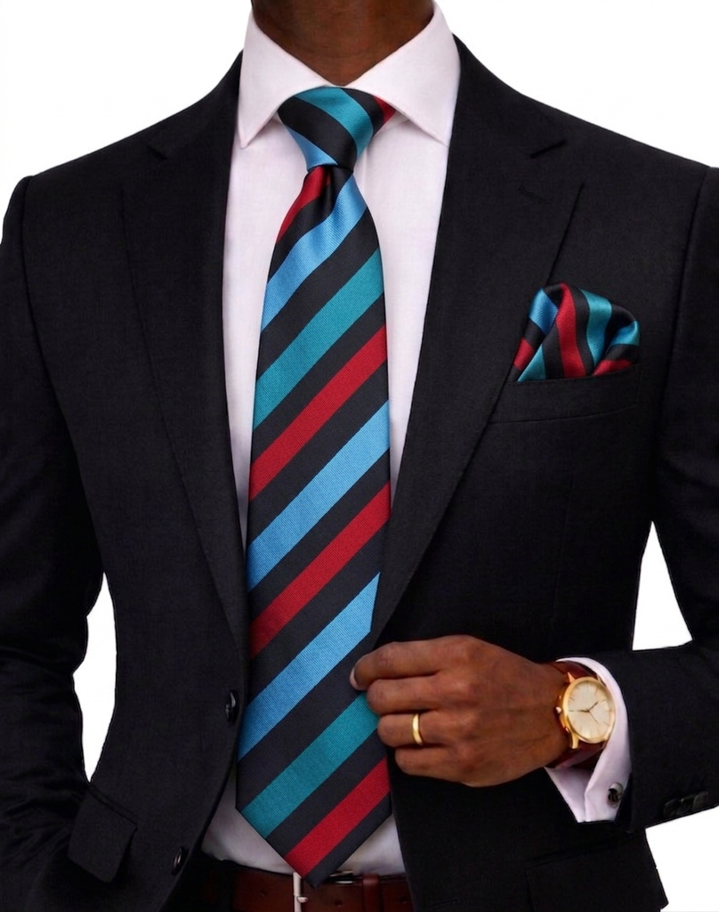 Egyptian Stripe A3 | Black/Red/Blue/Turquoise | Tie & Pocket Square