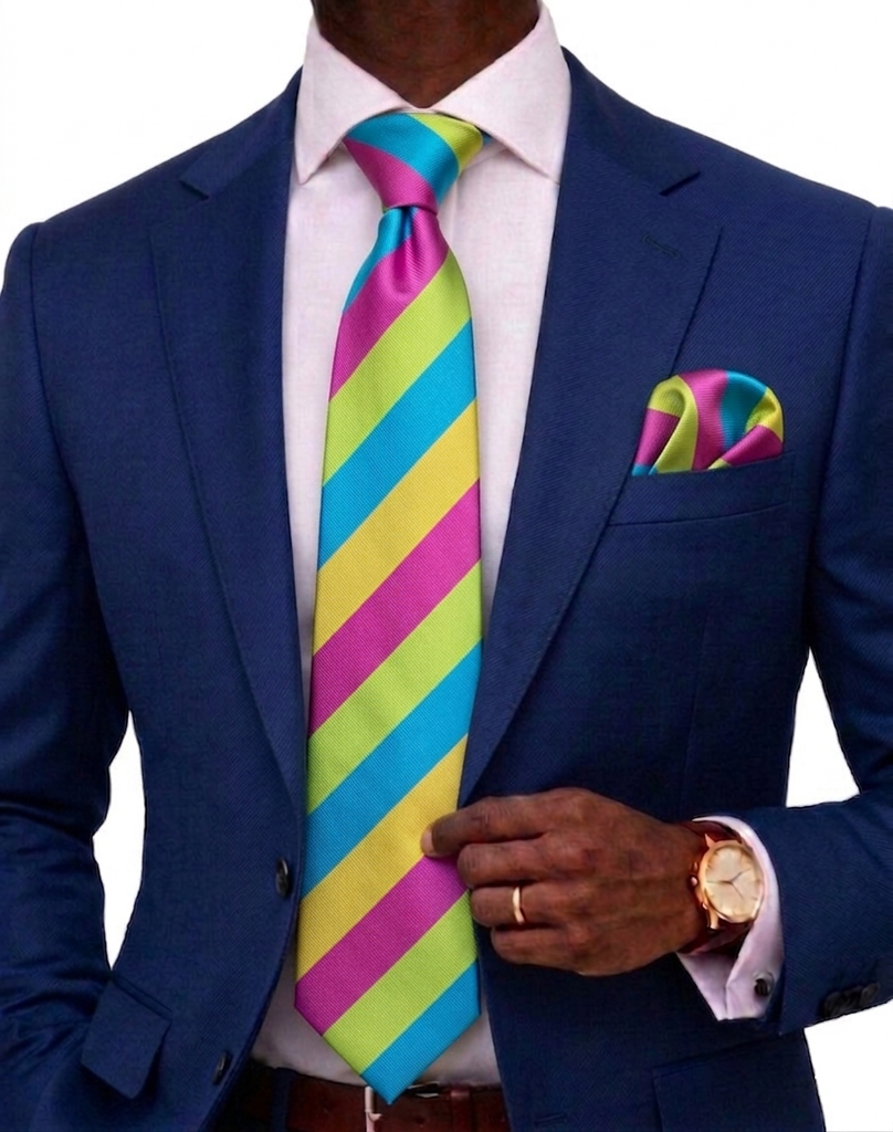 Egyptian Stripe A9 | Aqua/Yellow/Lime/Pink | Tie & Pocket Square