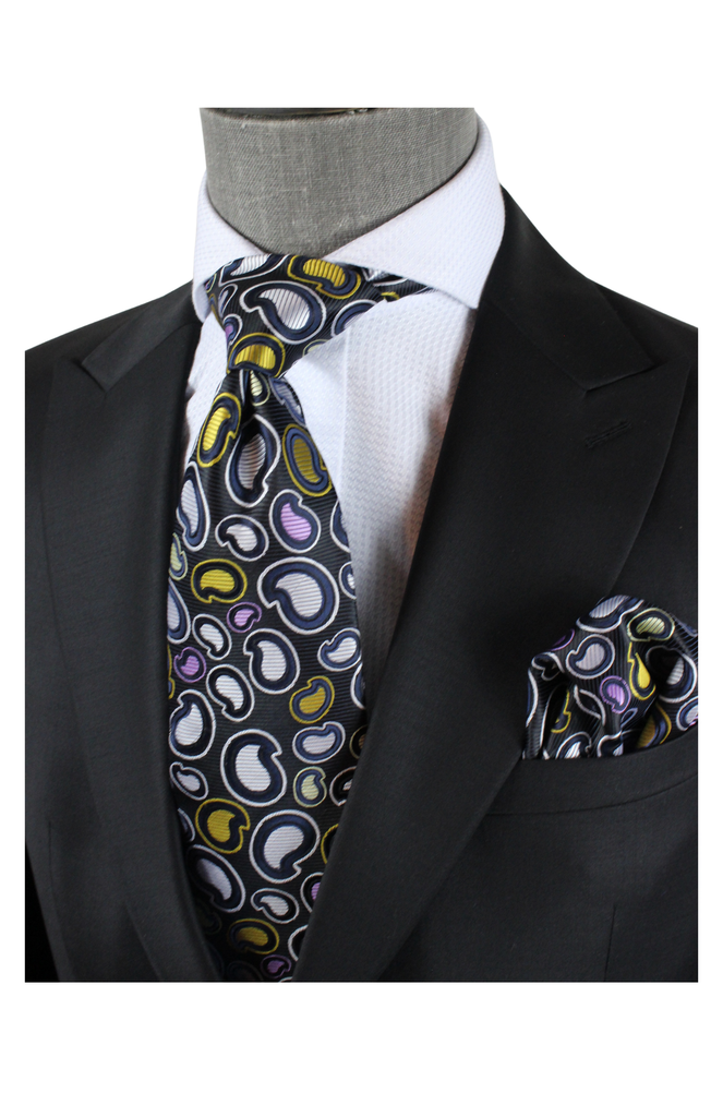 Wonderland 3 | Multi Color Black & Navy Pailsey | Tie & Pocket Square