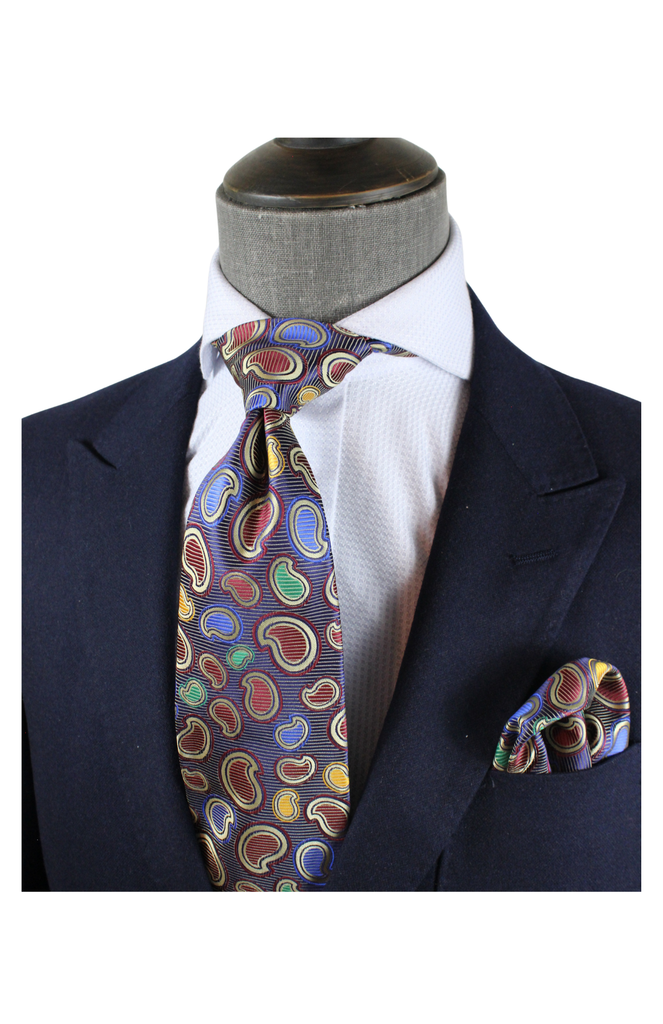 Wonderland 8 | Gold Navy & Wine Paisley | Tie & Pocket Square