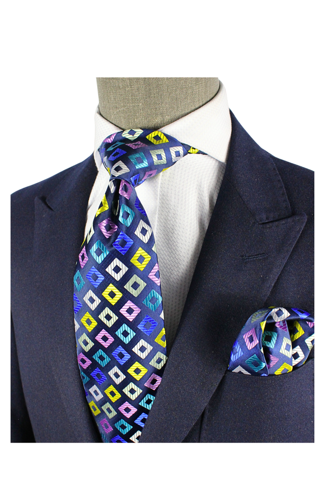 Dunes 5 | Multi Color Midnight Blue Geomteric | Tie & Pocket Square