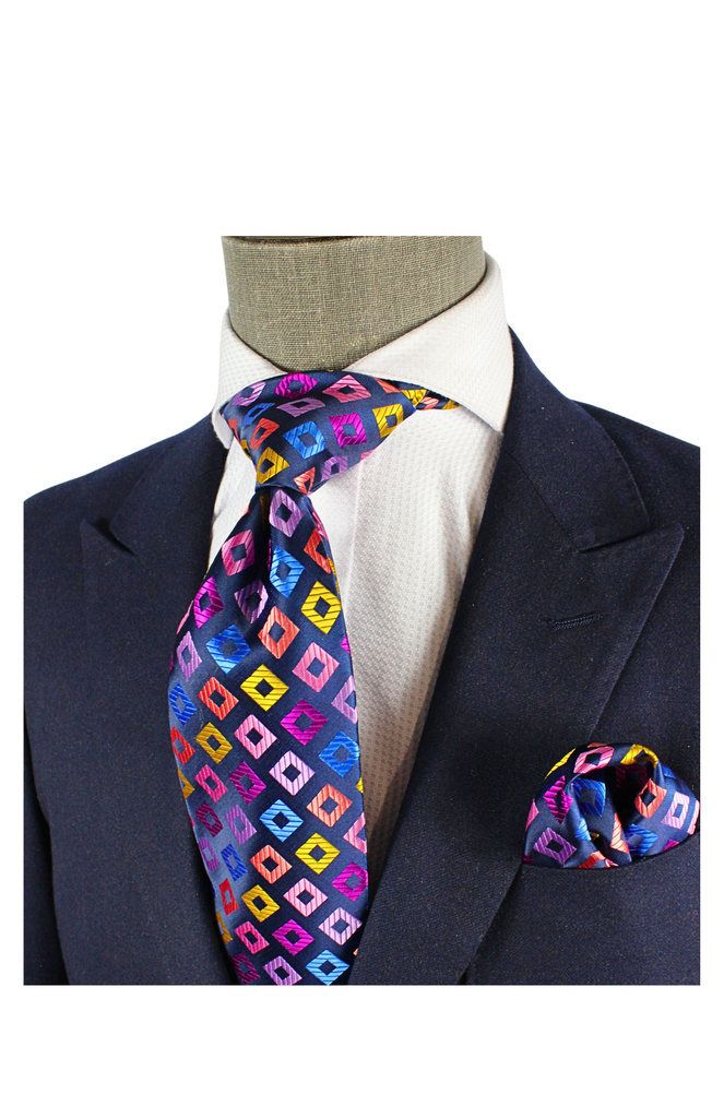 Dunes 7 | Multi Color Navy 2 Geomteric | Tie & Pocket Square
