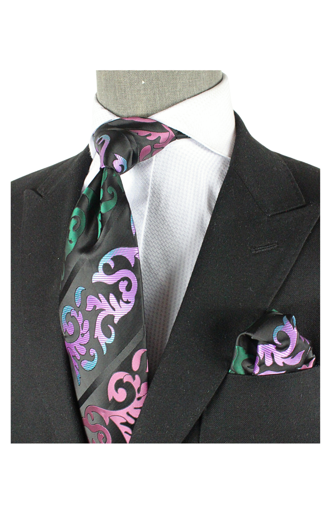 Jumeirah 1 | Multi Color Black Floral | Tie & Pocket Square