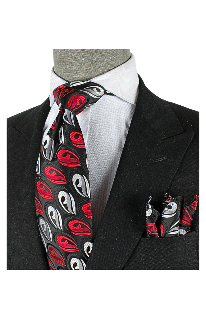 Qatar 1 | Black & Red Floral | Tie & Pocket Square