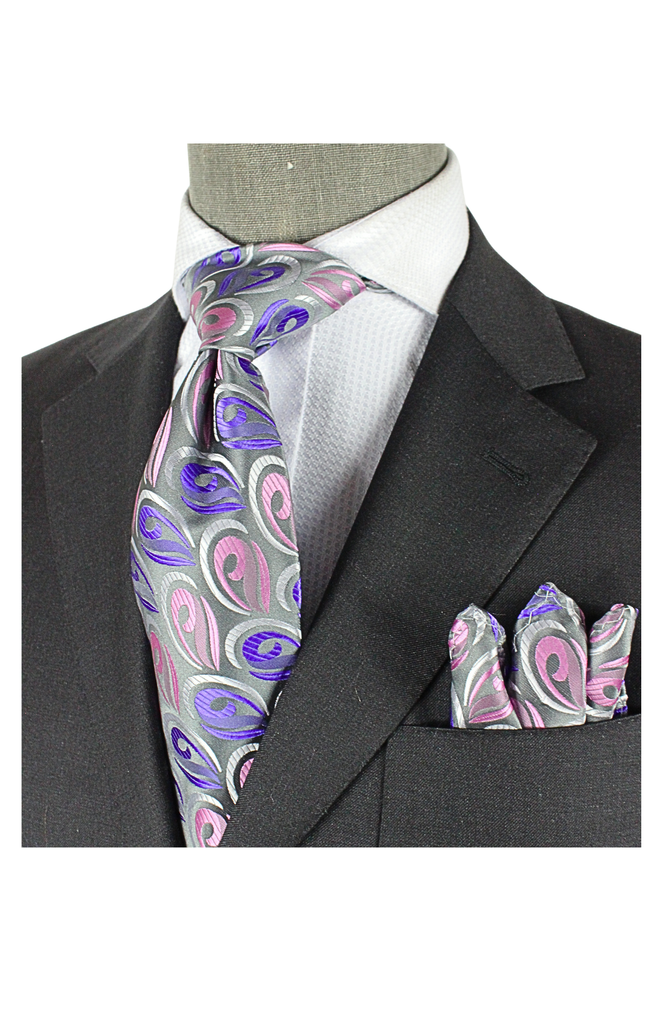 Qatar 5 | Grey Pink & Lavender Floral | Tie & Pocket Square