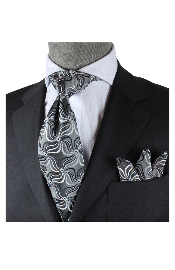Sheikh 10 | Grey & Black Geometric | Tie & Pocket Square