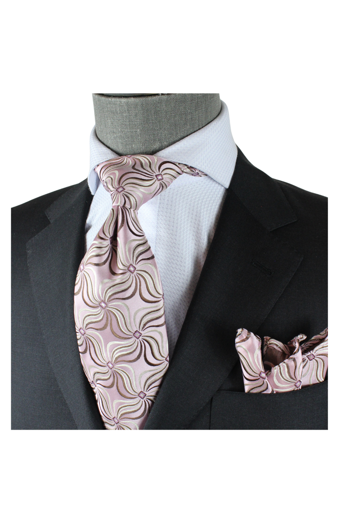 Sheikh 7 | Pink & Brown Geometric | Tie & Pocket Square