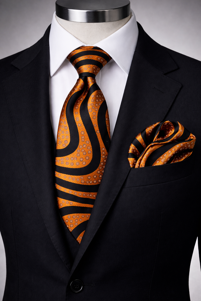 CORLEONE 3 | BLK & ORANGE | -TIE & POCKET SQAURE