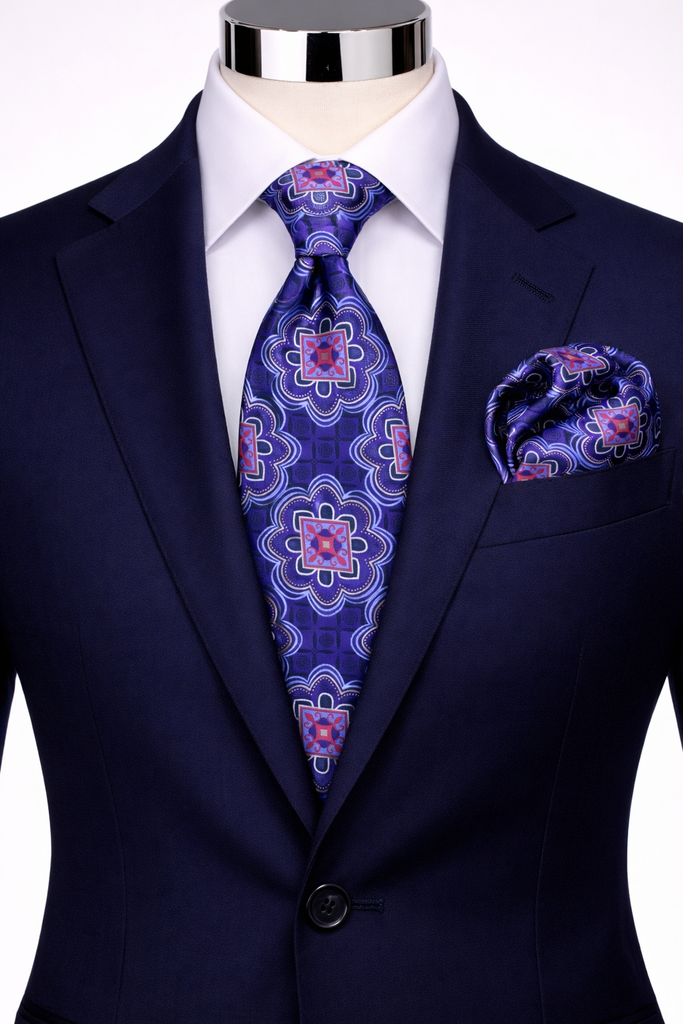FREDO 10 | PURPLE & NAVY | TIE & POCKET SQAURE
