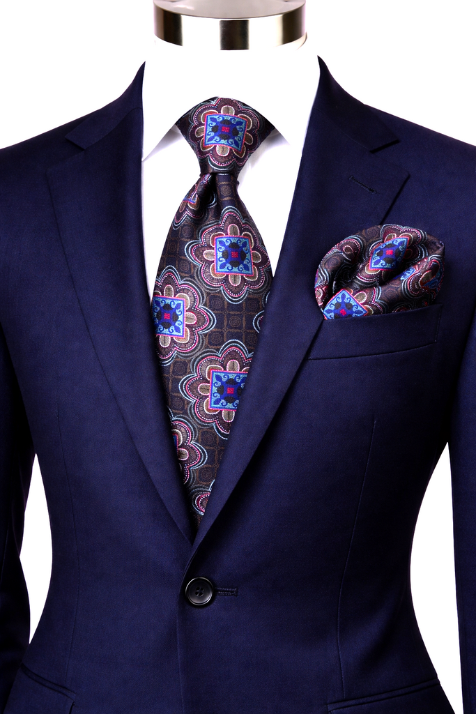 FREDO 6 | NAVY/BROWN/CORAL | TIE & POCKET SQAURE