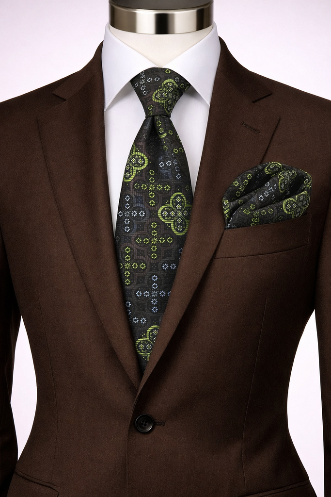 JOHNNY 4 | CHOCOALTE & GREEN | TIE & POCKET SQAURE