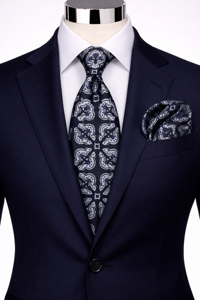 LUCA BRASI 1 | BLK/NAVY/SILVER | TIE & POCKET SQAURE