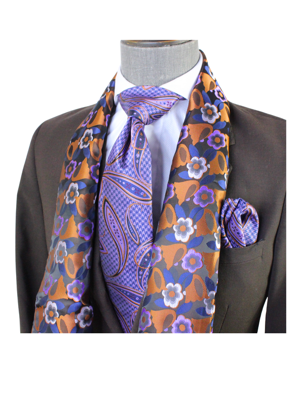 Krazy Paisley C2 & African Iris 4 | Scarf & Tie Combo