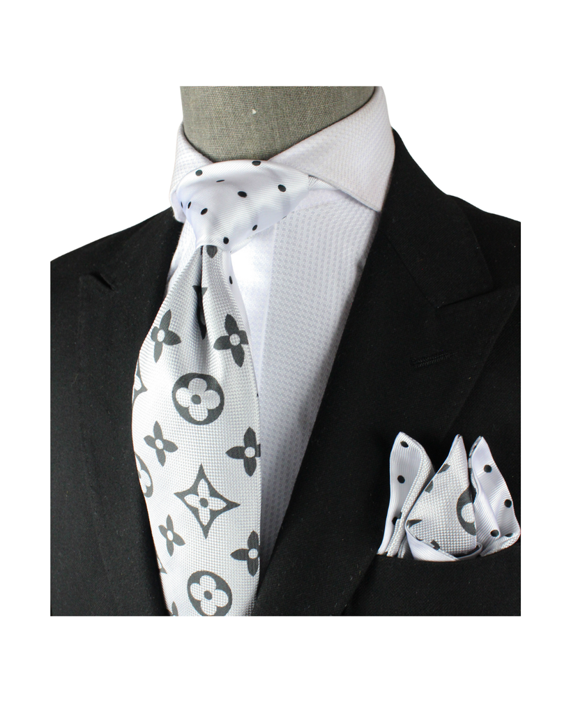 LV Pindot B2 | White & Black | Tie & Pocket Square