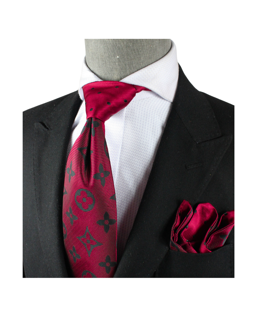 LV Pindot B6 | Wine & Black | Tie & Pocket Square