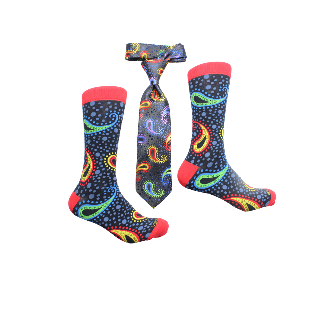 Venus 1 | Black Paisley | Tie & Sock Combo