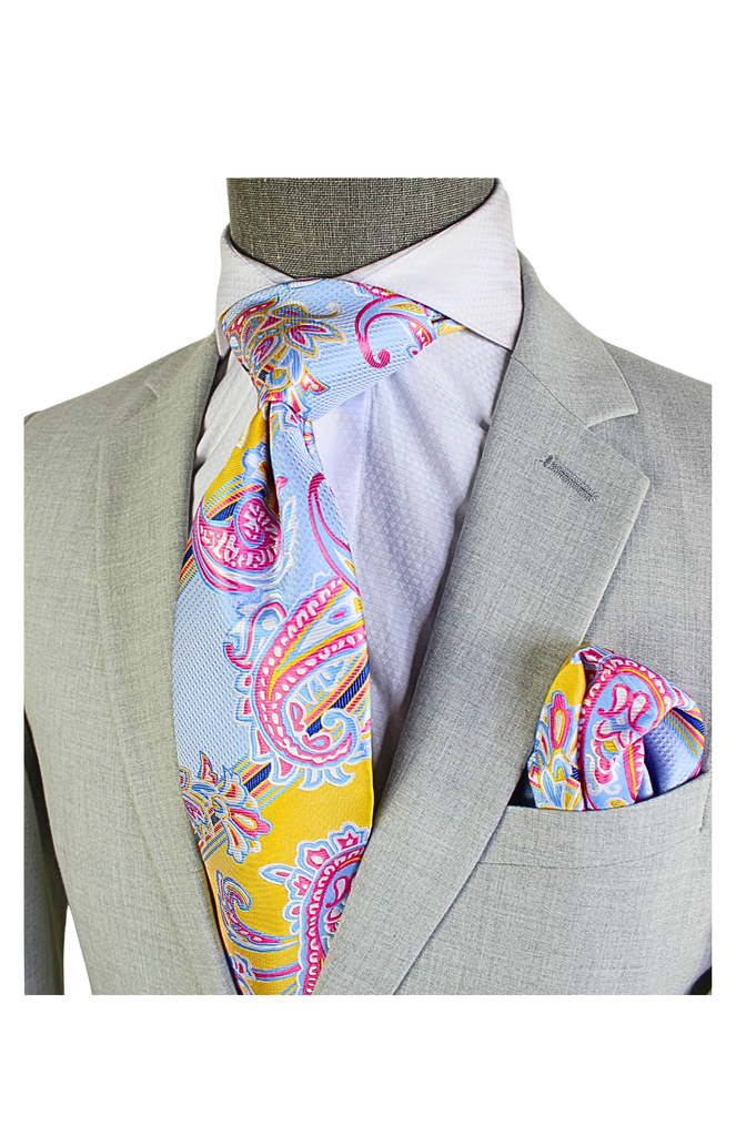 Krazy Paisley C4 | Sky Blue Yellow & Pink | Tie & Pocket Sqaure