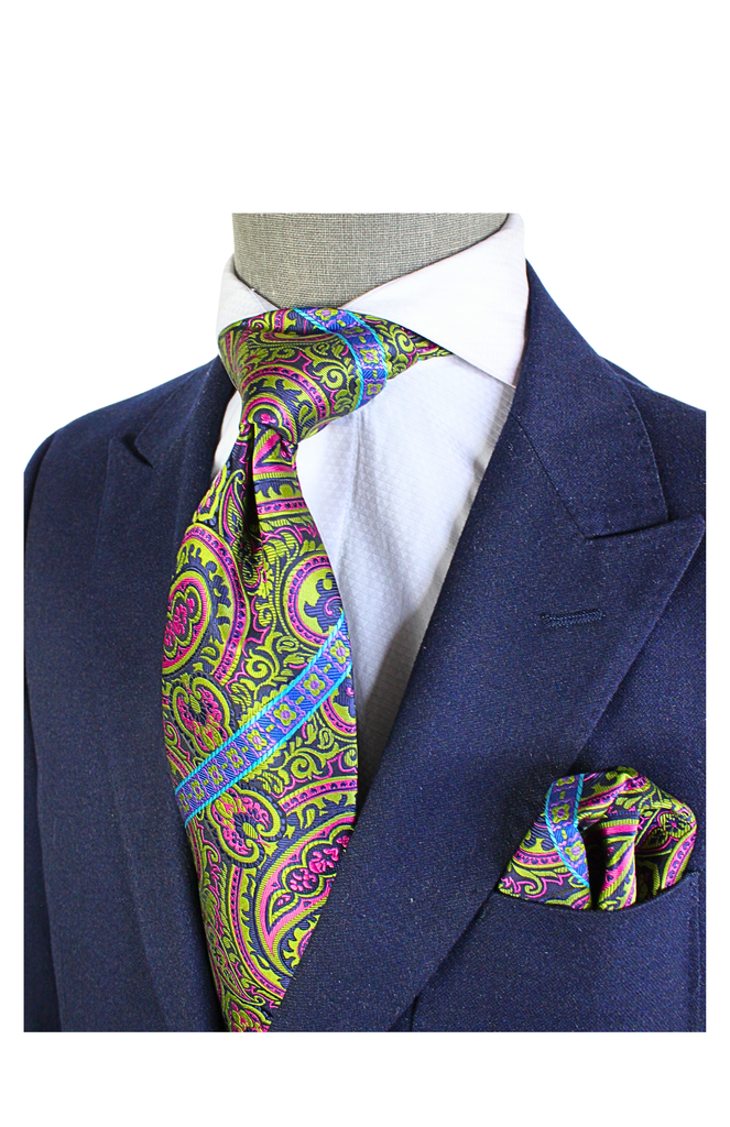 Krazy Paisley E10 | Midnight Navy Fushia & Lime | Tie & Pocket Sqaure