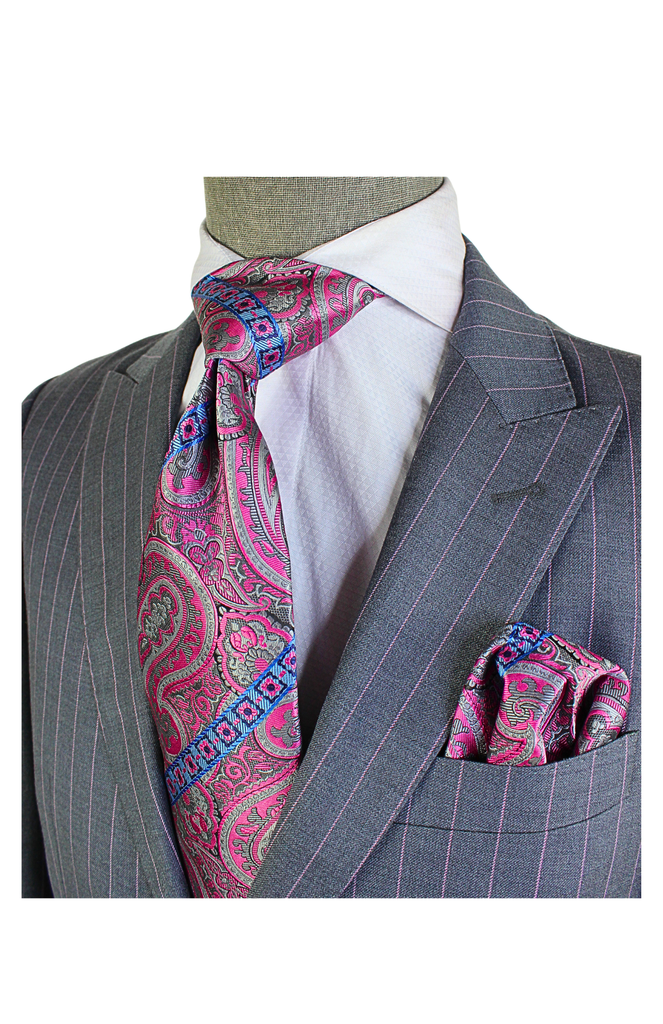 Krazy Paisley E6 | Grey & Pink | Tie & Pocket Sqaure