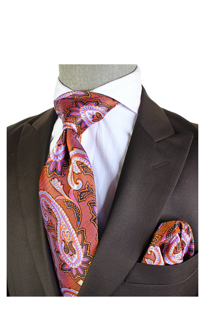 Krazy Paisley i6 | Rust Lavender & Blk | Tie & Pocket Sqaure