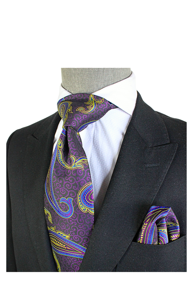 Krazy Paisley K6 | Blk Plum & Royal | Tie & Pocket Sqaure