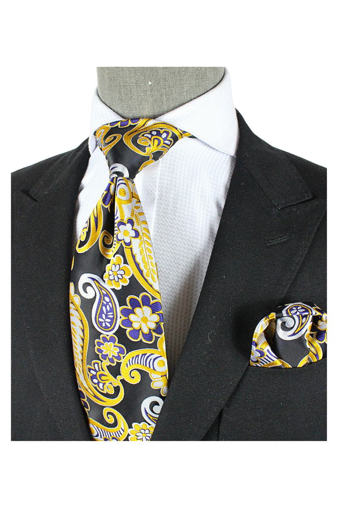 Sharjah 1 | Black Gold & Navy Paisley | Tie & Pocket Square
