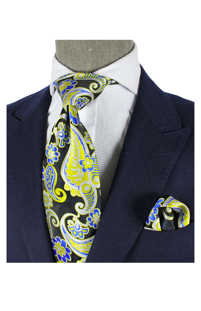Sharjah 3 | Black Royal & Yellow Paisley | Tie & Pocket Square