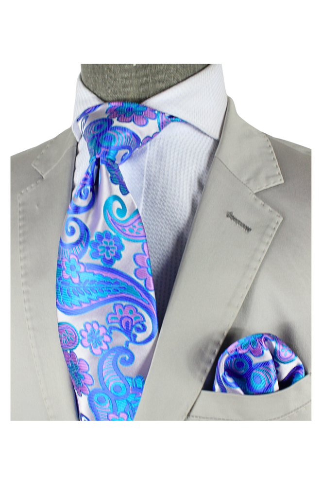 Sharjah 6 | Silver Royal & Lavender Paisley | Tie & Pocket Square