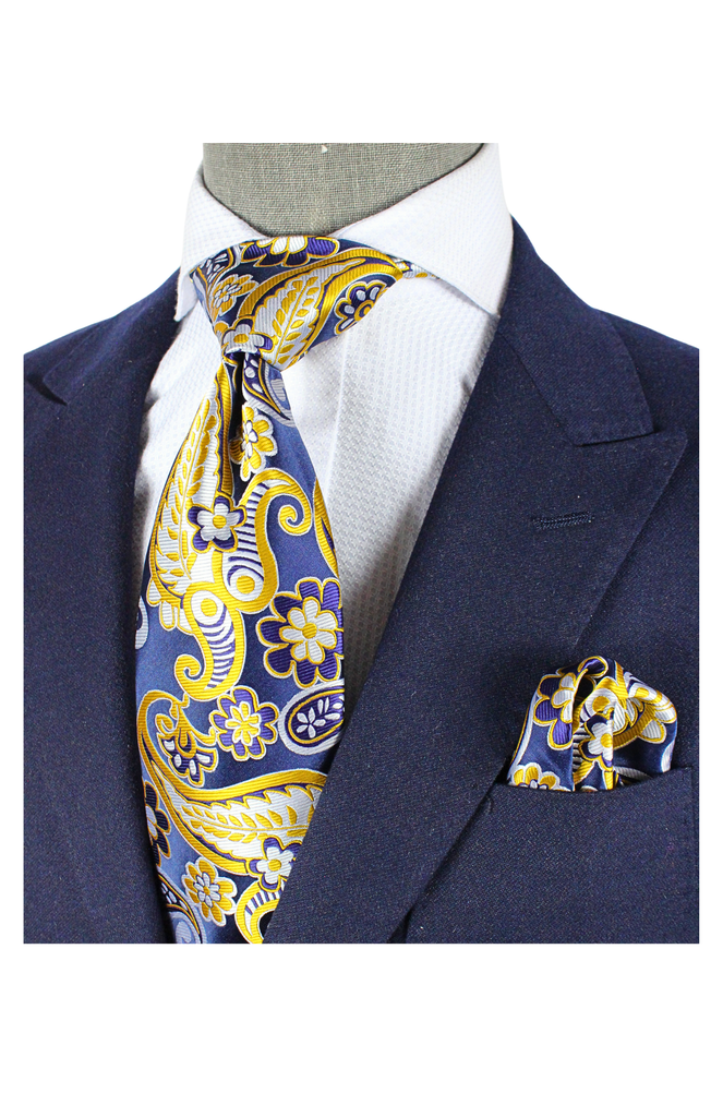 Sharjah 7 | Navy Gold & White Paisley | Tie & Pocket Square
