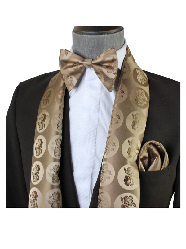 Sold outFloral Solid A7 | Taupe | Scarf & Bowtie Set
