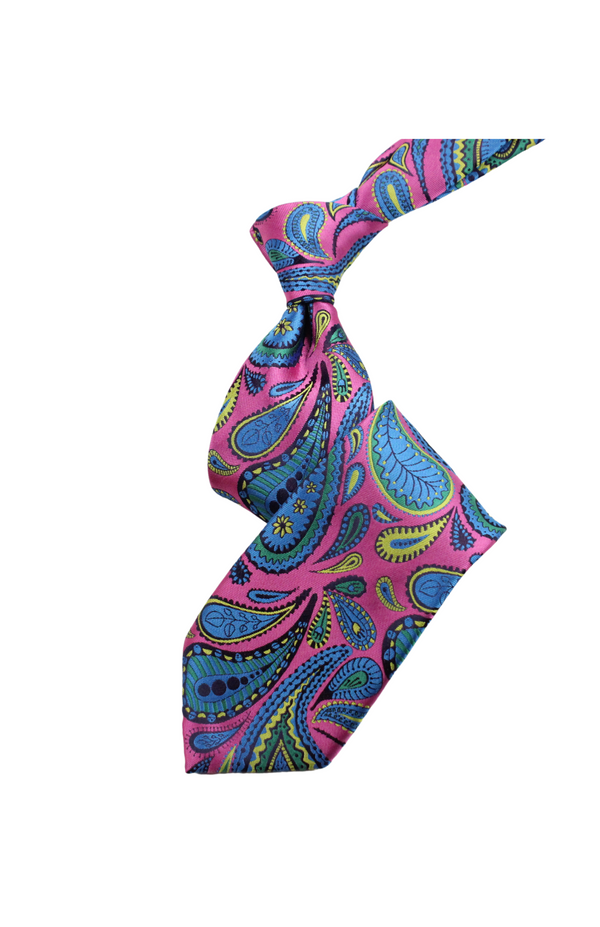 Sold outTiger 6 | Fuchsia Yellow & Blue Paisley | Necktie