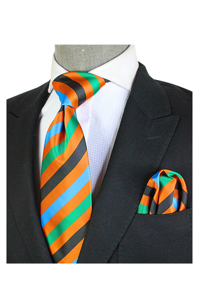 Angola Stripe A5 | Multi Color Rust| Tie & Pocket Square