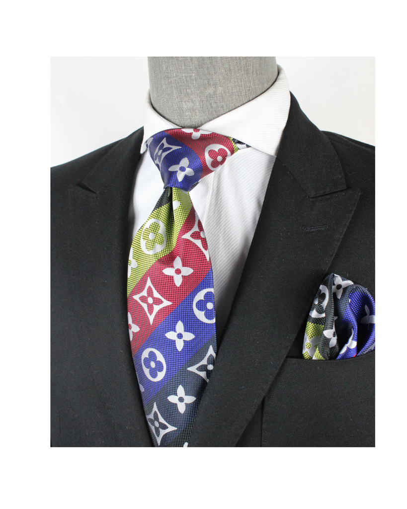 / LV Stripe A6 | Black/Red/Navy/Lime | Tie & Pocket Square