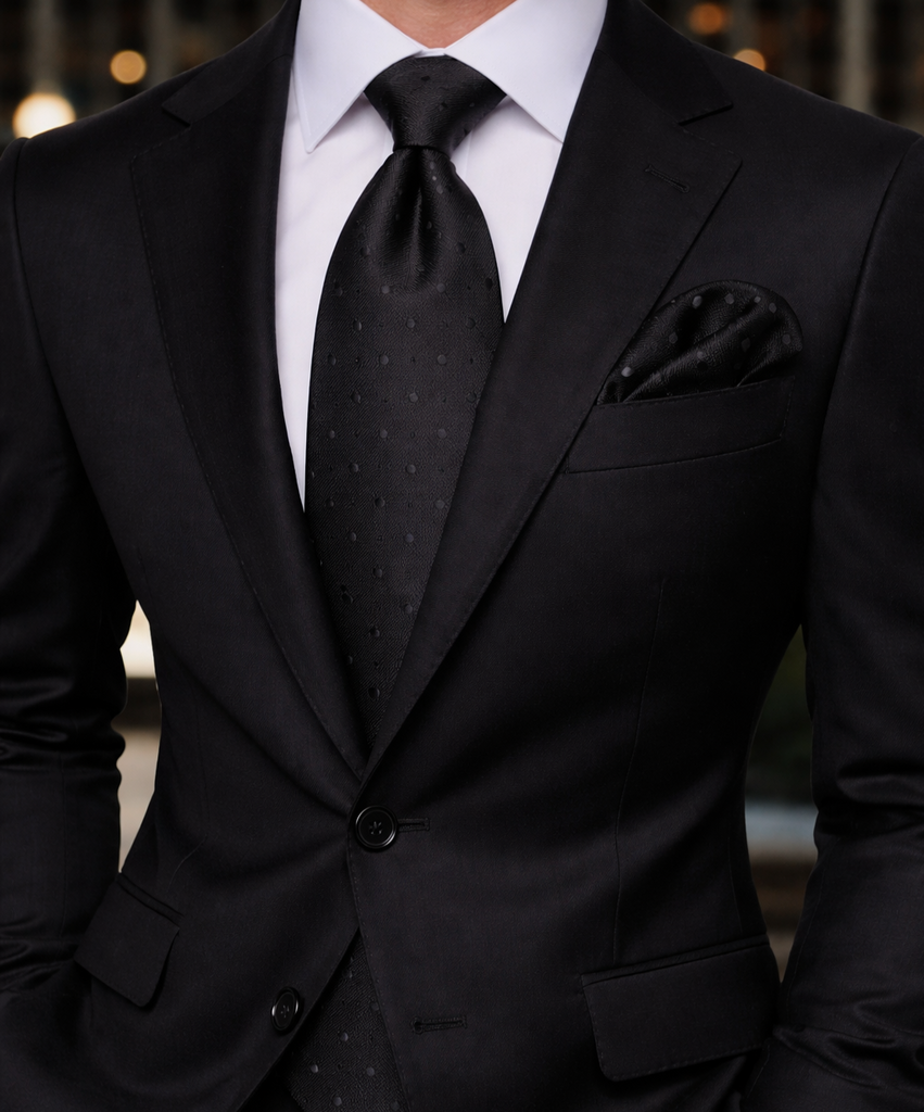 Pindot A1 | Black Solid Dot | Tie & Pocket Square