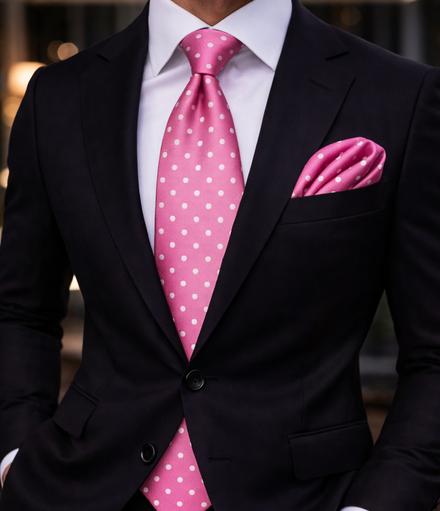 Pindot A9 | Pink Solid White Dot | Tie & Pocket Square