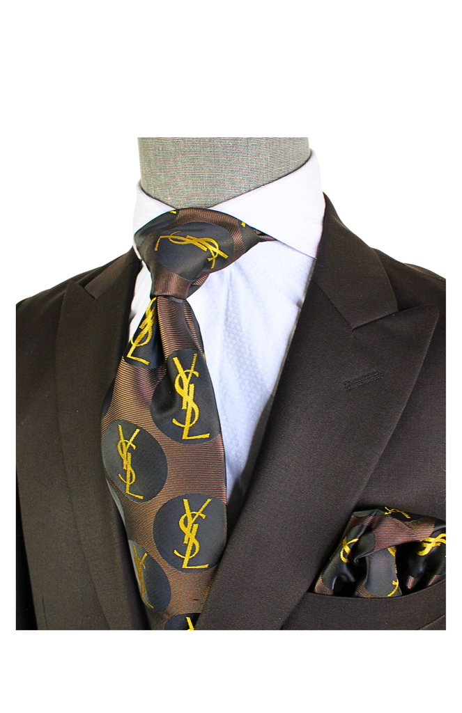 / YSL 3 | Brown & Yellow | Tie & Pocket Square